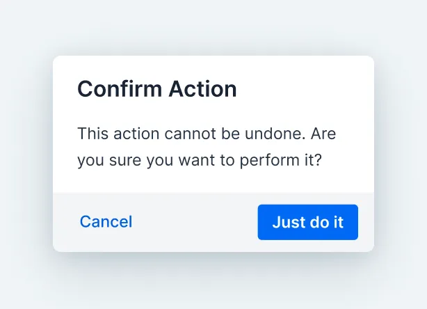 Confirm Dialog is a modal Dialog used to confirm user actions.