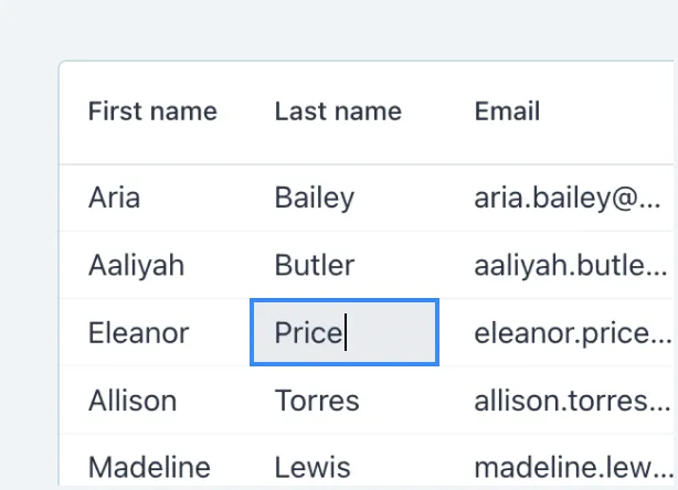 Grid Pro is an extension of the Grid component that provides inline editing with full keyboard navigation.
