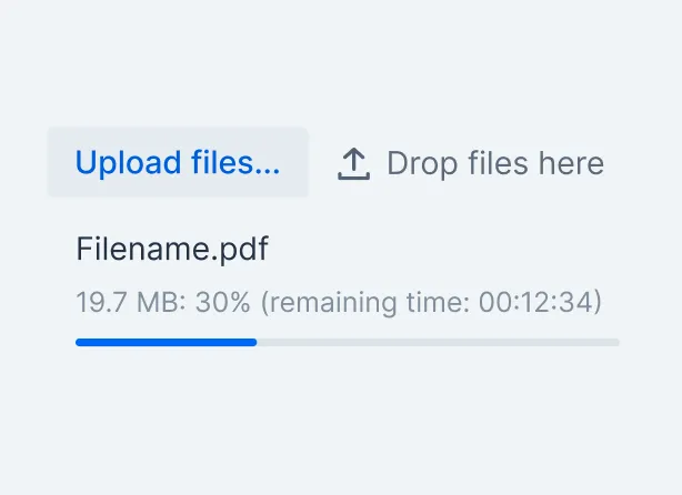 Upload allows the user to upload files, giving feedback to the user during the upload process.